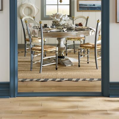 This 8′ x 10′ woven rug features a center of sustainable jute, bordered by a scalloped edge of black and white wool stripes. So versatile, it’s perfect for any room.