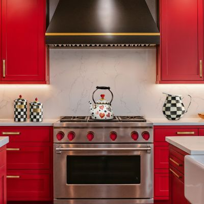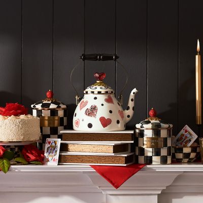 Suit your personali-tea with The Tea Kettle Collective. Have a heart (or two) for our Love 2 Quart Tea Kettle, featuring hearts and polka dots on a heavy-gauge steel underbody, finished with a wood handle and a heart-shaped, red glass knob on the lid. Each special-edition Collective kettle makes a great cup of tea, of course, and adds MacKenzie-Childs style to your stovetop. Don’t be surprised that you need more than one.