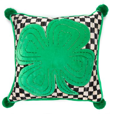 May luck always be with you with our Lucky Clover Pillow. Fresh as the first day of spring, it features a beaded green velvet four-leaf clover on a background of Courtly Check®, trimmed with green velvet piping and green fringed pom-poms on the corners.