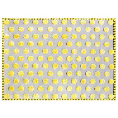 Connect the dots (literally!) with this 8′ x 10′ rug made of New Zealand wool with viscose that features a tufted and sheared pattern of chartreuse dots, trimmed with a striped border.