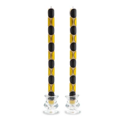 This set of two beeswax-blend dinner candles is absolutely enlightening on the table, featuring large black and gold dot wax appliques.