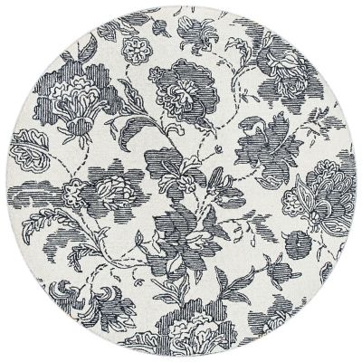 Add timeless MC style to your floors with the 6′ Round Marquee Floral Rug. This 100% looped wool rug features a simple floral pattern done in royal that pairs well with so many of our collections.