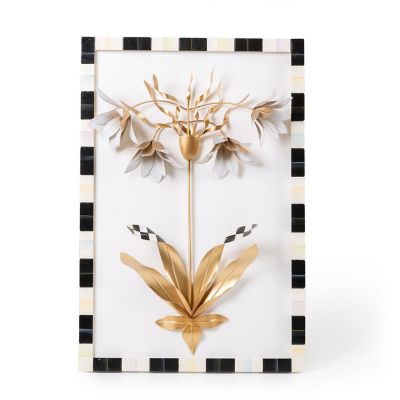 Our Marquee Imperial Wall Art blossoms on your walls for a fresh and fun take on MacKenzie-Childs. Three-dimensional metal flowers with touches of Courtly Check® are set on a linen background and edged with a hand-painted Courtly Stripe border.