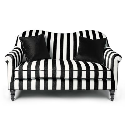 Put your show-stopping style up in lights. The Marquee Black Stripe Chenille Loveseat is a cozy versatile striped silhouette that mixes and matches with solids and patterns. It has a domestic hardwood frame, upholstery-weight chenille, velvet welt, and our exclusive fabric decking underneath the loose seat cushion. Includes two 20″ square pillows.