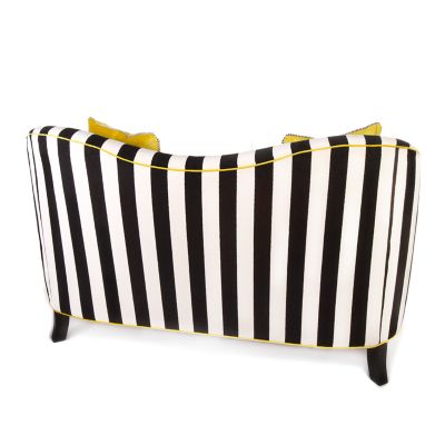 Put your showstopping style up in lights. The Black Chenille Stripe Marquee Loveseat is a cozy versatile striped silhouette that mixes and matches with solids and patterns. It has a domestic hardwood frame, upholstery-weight chenille, contrasting cording, and our exclusive fabric decking underneath the loose seat cushion. Includes two 20″ square pillows.