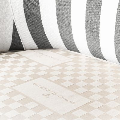 Put your show-stopping style up in lights. The Marquee Grey Stripe Chenille Sofa is a versatile striped silhouette that stands on its own and mixes and matches with solids and patterns. Features include domestic hardwood frame, upholstery-weight chenille, contrasting welt, and our exclusive fabric decking underneath the loose seat cushion. The finishing touch is four natural white pillows with black and white checked cording; two are 20″ square, two are 22″.