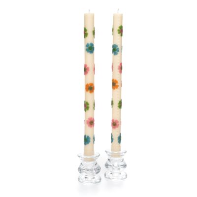 Set the scene for a glowing spring celebration with our Pastel Mod Flower Dinner Candles. A blend of beeswax and paraffin, this set of two candles is embellished with pastel floral appliques.