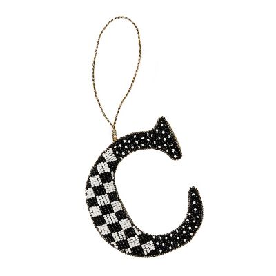 Give the Christmas tree your distinct style with this monogram ornament done entirely in black and white beads that hangs from a golden cord. Perfect for the tree, of course, and also terrific for embellishing packages, place settings, and more.