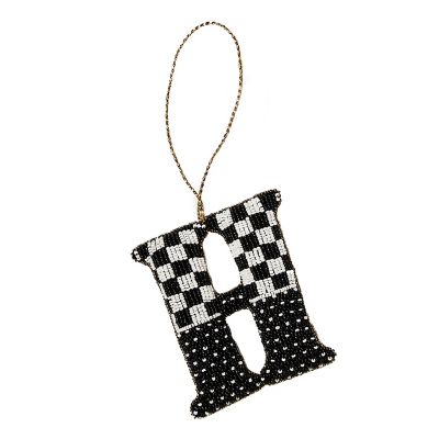 Give the Christmas tree your distinct style with this monogram ornament done entirely in black and white beads that hangs from a golden cord. Perfect for the tree, of course, and also terrific for embellishing packages, place settings, and more.