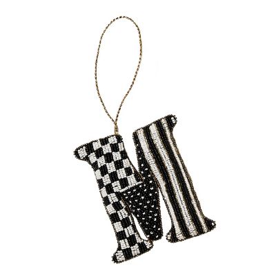 Give the Christmas tree your distinct style with this monogram ornament done entirely in black and white beads that hangs from a golden cord. Perfect for the tree, of course, and also terrific for embellishing packages, place settings, and more.