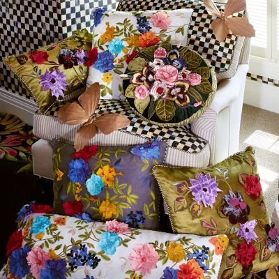 If there was ever a pillow with panache, it’s our Moonlight Garden Pillow. A layered symphony of sculpted and embroidered flowers and leaves on a base of luxurious velvet, it’s the perfect accent for our dark and dramatic Moonlight Garden furniture collection.
