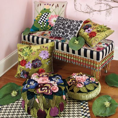 If there was ever a pillow with panache, it’s our Moonlight Garden Pillow. A layered symphony of sculpted and embroidered flowers and leaves on a base of luxurious velvet, it’s the perfect accent for our dark and dramatic Moonlight Garden furniture collection.