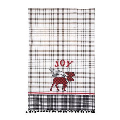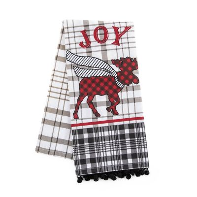 Fun and functional, this dish towel, featuring an appliqued moose and trimmed with pom-poms, brings seasonal spirit into the kitchen.