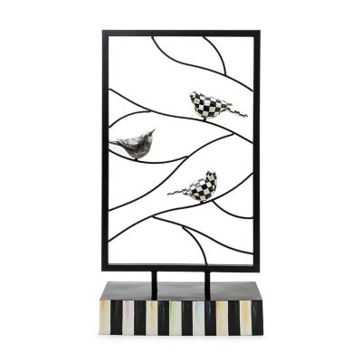 Make your outdoors as stylish as your indoors with the Naturals Bird Garden Art. A trio of hand-painted resin birds perch on a metal frame of branches that is set in a Courtly Stripe stand.