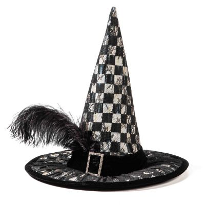 You’ll be positively spook-tacular in this Courtly Check® witch’s hat, topped with a black lace overlay, trimmed in velvet, and embellished with a rhinestone buckle and black feather. Pair it with the Nightfall Capelet and be truly bewitching.