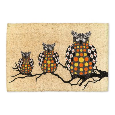 Make a seasonal statement of style before you even open the front door with this printed coir entrance mat, featuring a trio of colorful owls.