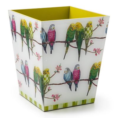 Make the ordinary waste bin extraordinary. This container features a print of parakeets printed under glass, finished with beveled edges.