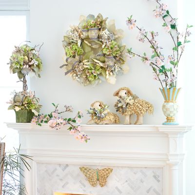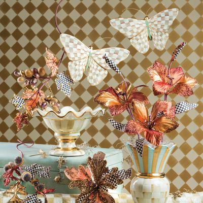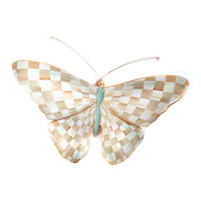 Our favorite dinnerware patterns take a flight of fancy. The Parchment Check™ Butterfly features a transfer decoration of our subtle checked pattern on its gold-edged wings and more floral transfers on its body, topped with a pair of wire antennae. A keyhole hanger on the back allows the butterfly to attach securely to the wall. Arrange it solo or in a grouping with our other butterflies.