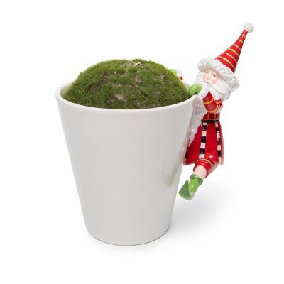 Personalize a potted poinsettia with our Patience Brewster Dash Away Pot Climber. Handmade and hand-painted, this Santa perches on the side of a plant pot, lending a little extra touch of MacKenzie-Childs.