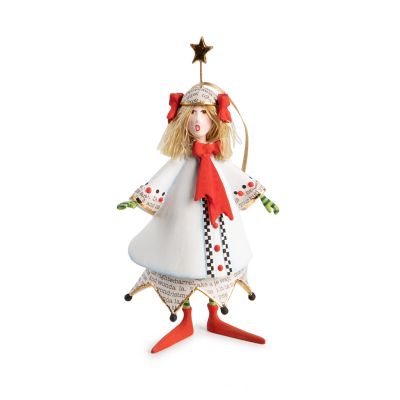 The Patience Brewster Pearl with Red Bows Holiday Caroler Ornament is sure to put a song in your heart. Inspired by songstress Pearl Bailey, this handmade and hand-painted ornament wears a star-topper hat and its white coat is decorated with Christmas carols and accented with a big red bow and gold leaf. Strike up the band and add it to your tree!