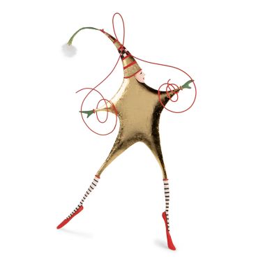 Let the Patience Brewster Rejoicing Star Ornament add a golden touch to the holidays. Made of tin and accented with gold leaf, this handmade and hand-painted shining star can go on the tree or be the focal point of a wreath or centerpiece.