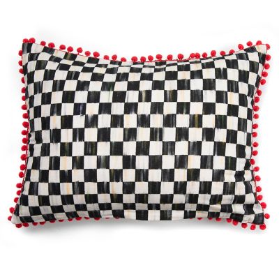 Add comfort and joy with our one-of-a-kind seasonal pillows. The Patience Brewster Three Kings Lumbar Pillow presents the three kings from Patience’s well-loved nativity, embellished with beads and embroidery on a cotton-linen front. The finishing touch is a checked fabric border and red pom-poms around the edges.
