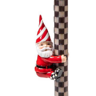 Add something extra to the tabletop with this peppermint candle climber, featuring a hand-painted Santa in red stripes and black and white checks. Fits one of our dinner candles.