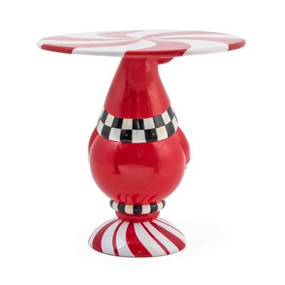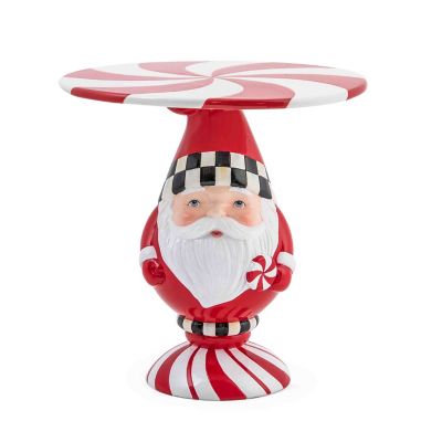 This ceramic, hand-painted Santa pedestal platter, decorated in red stripes and black and white checks, is a merry and bright way to serve holiday treats. It also makes an ideal gift for your favorite Santa collector.