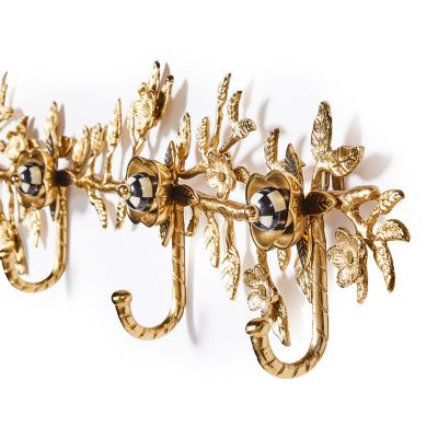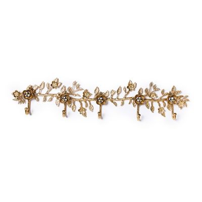Add fun and function to your walls with this brass-finish, cast-aluminum rack shaped to resemble a tree branch. It features five hooks embellished with our Petal Knobs that provide perfect perches for potholders in the kitchen, small towels in the powder room, or hats and scarves in the foyer.