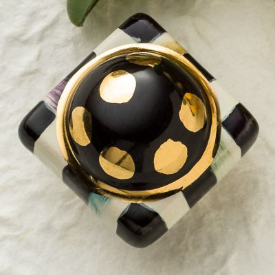 While quite handsome from any distance, the intricate splendor of our Courtly Check® Petit Four Square Knob emerges upon closer inspection. Hand-painted onto a petite ceramic square, our signature color-dragged checks have a dash of rich jewel tones woven into each brushstroke. Gold lustre dots add a little shine right up front and center. With fresh yet timeless palettes painted onto silhouettes of bold angles and graceful curves, our Petit Four Square Knobs mix and match wonderfully with each other and other knob patterns to brighten any space with a style all your own.