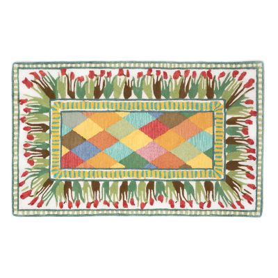 The 3′ x 5′ Poplar Ridge Rug features one of our classic Taylor ceramic patterns, bringing its color and charm to your floors. This wool-blend, hand-tufted rug is a mishmash of florals, diamonds, and stripes, and the pattern pays tribute to Poplar Ridge, a local spot that has spectacular views of Cayuga Lake from the hilltop just above Aurora. More interest comes from the weaving technique, where the blossoms are sculpted slightly higher, adding a bit of dimension.