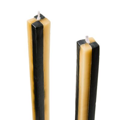 Talk about illuminating! This set of two beeswax-blend dinner candles features an unusual design that mixes black and ivory in a striking square shape that looks like checks when viewed from above.