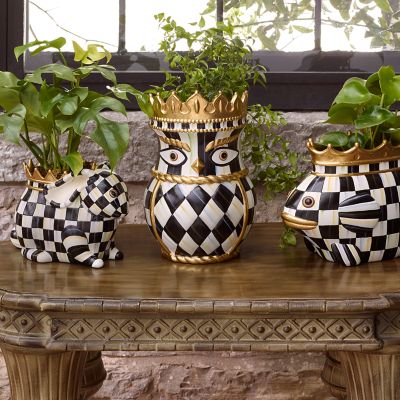 Have some fun with your flowers by displaying them in our Rabbit Queen Garden Pot. Made of high-temperature terra cotta and treated with a UV-resistant coating, it’s hand-painted in our Courtly patterns and topped with a gold foil crown.
