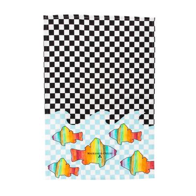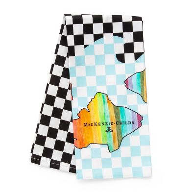 Fun and functional, this printed dish towel, featuring rainbow-hued fish and our distinctive logo, brings pride and joy into the kitchen.