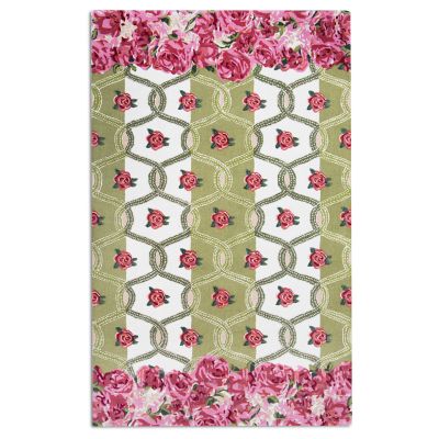Our wool blend 5′ × 8′ Really Rosy Rug is like having an English garden right at your feet. Hooked and tufted to give it some dimension, it features our Roses and Ribbon pattern in the middle with a blooming rose border on either end.