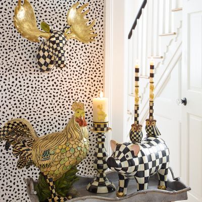 The impressive plumage on our Rooster Figurine explains why he rules the roost. He’s hand-painted in a kaleidoscope of soft hues and covered with stripes and Courtly Check®. With each detail lovingly added, he’s an artistic addition to any room.