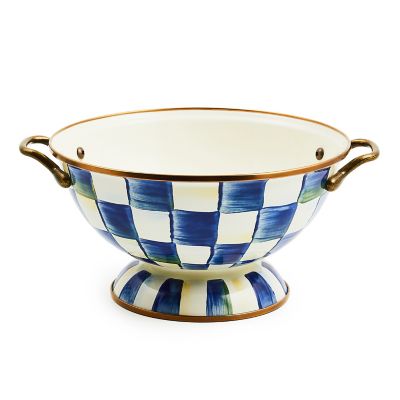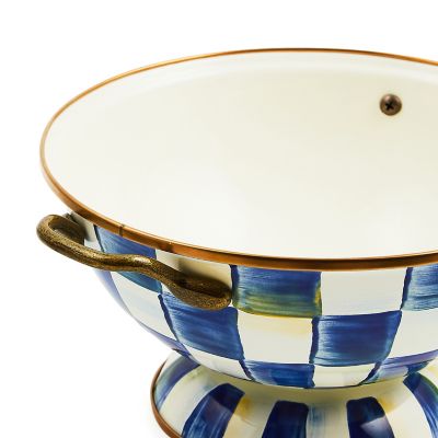 The Royal Check Enamel Almost Everything Bowl is the smaller companion to the Royal Check Enamel Everything Bowl and even stacks inside it. This version is a must-have for parties and for everyday use, featuring a heavy-gauge, hand-glazed steel underbody with hand-painted Royal Checks.