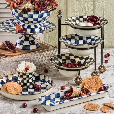 The Royal Check Baguette Dish does it all. Of course, as the name implies, it’s charming holding a fragrant baguette on the dining table. But its ample, elongated shape can serve all types of food. It even goes out of the kitchen and could hold pencils in a home office or washcloths in a bathroom. The heavy-gauge steel underbody is glazed with hand-painted, color-dragged checks in a range of blue hues that are similar in theme to our popular Courtly Check®.