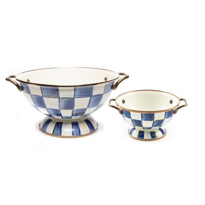 The Royal Check Enamel Almost Everything Bowl and the Royal Check Enamel Simply Anything Bowl stacking set. A must-have for parties and for everyday use, featuring a heavy-gauge, hand-glazed steel underbody with hand-painted Courtly Checks.