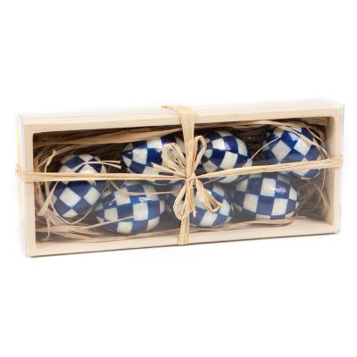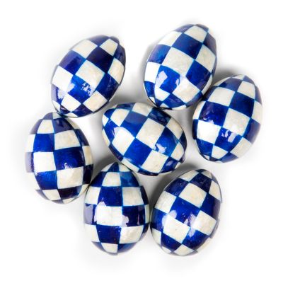 Our set of seven hand-painted Royal Check Mini Capiz Eggs make a statement for spring. Decorated with our Royal Check pattern and presented in a wooden crate, these can be displayed alone or mixed with our other Royal Capiz eggs.