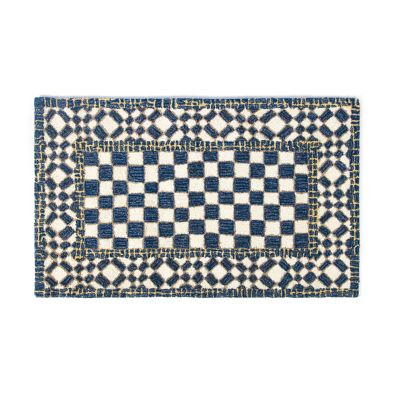 With a striking cream and blue checked center and a geometric border inspired by the tilework floors of a Mediterranean palazzo, the wool-blend 2’3″ x 3’9″ Royal Check Rug makes a regal addition to any room in the house. Hand-hooked, it gets subtle variations in its palette from space dyeing, a process that applies multiple colors along the length of each strand of yarn.