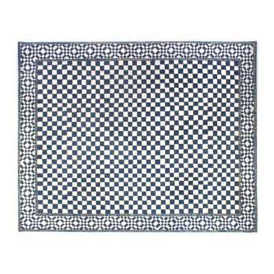 With a striking cream and blue checked center and a geometric border inspired by the tilework floors of a Mediterranean palazzo, the wool-blend 8′ x 10′ Royal Check Rug makes a regal addition to any room in the house. Hand-hooked, it gets subtle variations in its palette from space dyeing, a process that applies multiple colors along the length of each strand of yarn.