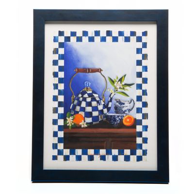 Add some wow to your walls with the Royal Check Tea Kettle Still Life Wall Art. Featuring a print of our Royal Check Tea Kettle, it’s outlined with a deckled edge on premium archival matte paper in a luminescent blue frame. Pair it with the Royal Check Vase Still Life Wall Art to create a display of blue bliss.