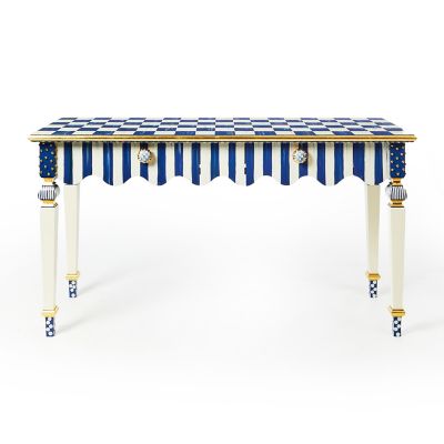 Made start to finish in Aurora, New York, the beautifully proportioned Royal Stripe® Console Table features Royal Check and Stripe on a silhouette that includes a graceful scalloped-edge apron, corner blocks studded with gold beads, and carved legs, all hand-painted by our artisans. The drawers feature handcrafted Royal Check ceramic knobs.