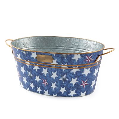 Get ready for all-star celebrations with the Royal Star Beverage Bucket. This galvanized metal bucket, decorated with checked and striped stars, is perfect for holding ice and an abundance of cold drinks.