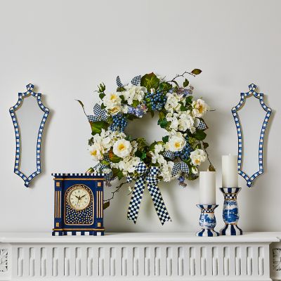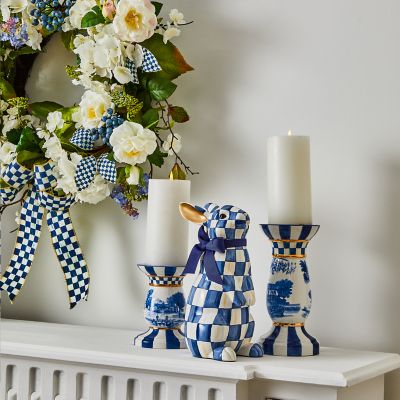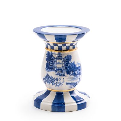 Our ceramic Short Royal Toile Candle Holder is a fresh take on MacKenzie-Childs, featuring scenes from our Aurora campus, accented with stripes, checks, and gold lustre. It’s just right for displaying any 3”-diameter pillar candles.
