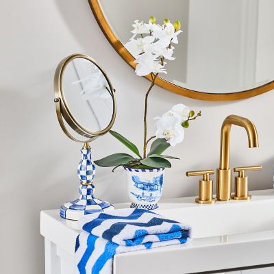 The Medium Royal Toile Potted Orchid gives this classic bloom some MC style with a faux ivory orchid presented in a ceramic pot, decorated with landmarks from our Aurora campus.