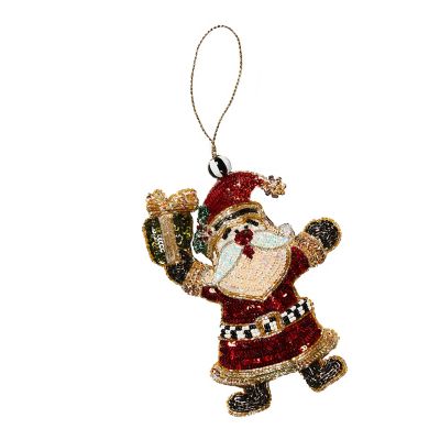 Make the tree merry with this beaded Santa ornament, featuring glass beads on the front and Courtly Check® fabric on the back.