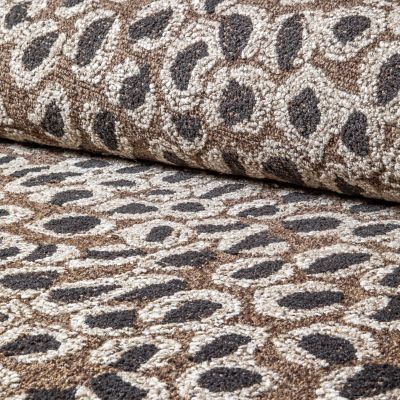 Explore your animal instincts with the 5′ × 8′ Serengeti Rug. Done in versatile neutral tones, this hooked wool-blend rug has dimensional animal spots, finished with a checked border.