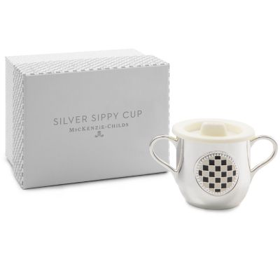 Pass along MacKenzie-Childs to the next generation. Made of silver-plate and trimmed with inlaid Courtly Check®, this sippy cup is a classic keepsake that’s beautifully boxed and ready for gift-giving.